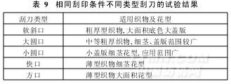 主要对刮刀类型、压力与角度,对花精度,花版的排序进行研究。先对不同类型的刮刀做了刮印试验,其结果如表9所示。
