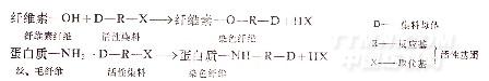 染色过程中,染料与纤维之间的化学反应,因各类纤维上官能团不同,故存在较大的差别。可分别用化学反应通式说明如下: