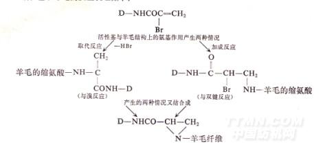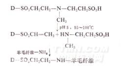 2、引入N-甲基氨基乙磺酸衍生物:赫司脱公司的Hostalan染料,在PH为5时,沸煮产生乙烯砜煮。