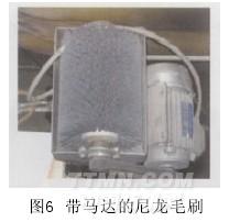 目前市面上所用的磨裤机种类已较齐全,并有带马达的、固定的自动刷出现,大大改善了牛仔裤大面积刷磨的效果和效率。自动刷和磨裤机见图5和图6。