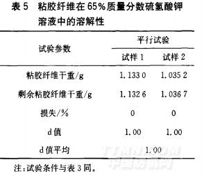 粘胶纤维在65%质量分数硫氢酸钾溶液中的溶解情况如表5所示。