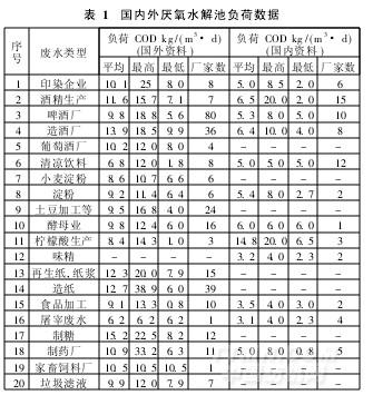 国内外采用厌氧水解池设计建立的污水处理厂,其水解池的负荷数据列示于表1,以供参考。