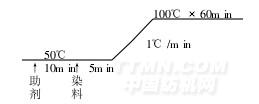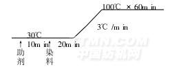 染毕,先于70℃下水洗15min,然后于90℃下皂洗30min。皂洗液由1.5%(owf)的复合表面活性剂SKDⅢ(其净洗能力较普通表面活性剂的净洗能力强)与水配成,用纯碱调节pH值至8.5。水洗、皂洗的浴比均为50∶1。