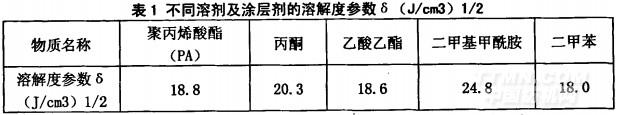 查阅《中国化工商品大全》[13],根据溶剂及被溶解物质(涂层剂)的溶解度参数,选择四种溶剂来溶解PA试样。这四种溶剂分别为丙酮、乙酸乙酯、二甲基甲酰胺和二甲苯。其溶解度参数[14]见表1所示。