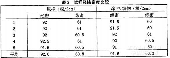 实验测得的涤/棉织物原样及PA试样的经纬密度如表2所示。