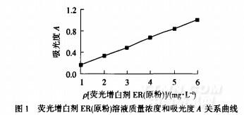 荧光增白剂ER原粉的生产企业可在此适宜的质量浓度范围确定一个质量浓度,用作本企业产品紫外吸收的测定质量浓度,如确定荧光增白剂ER(原粉)溶液的测定质量浓度为4mg/L