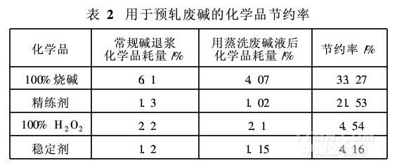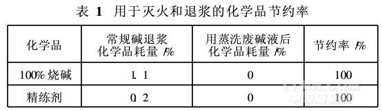 由表1知,将蒸洗废碱液用于烧毛后灭火、退浆,