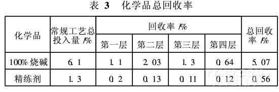 和精练剂总的回收利用率见表3。