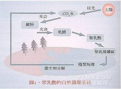 聚乳酸纤维(polylactic acid,简称PLA纤维)。该纤维以玉米淀粉为原料,先将其发酵制得乳酸,然后经缩合、聚合反应制成聚乳酸,再利用耦合剂制成具有良好机械性的较高分子量聚乳酸,最后经过关键的化学改质,将其强度、保水性提升,并将其纤维化。由于乳酸是存在于动物、植物及微生物间的天然物质,很容易于大自然间降解,该纤维完全不使用石油等化工原料,其废弃物在土壤和海水中的微生物作用下,可分解成二氧化碳和水,完成自然循环,不会污染地球环境。由于该纤维的初始原料为淀粉,其再生之循环周期短,大约为一至二年,其产生的二氧化碳由于植物光合作用在大气中的含量会逐渐减少。