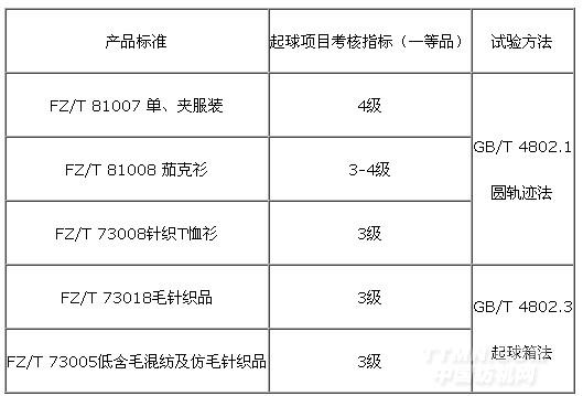 由上表可见毛针织品的考核指标相对较低,而测试方法却选用测试条件相对较轻的起球箱法,导致对毛针织品和低含毛混纺及仿毛针织品起球项目的考核过轻,造成这类产品虽然按产品标准考核合格,但实际穿着使用过程中经常出现较严重起球现象,影响服装的服用性能,因此建议提高毛针织品和低含毛混纺及仿毛针织品的起球项目的考核指标,或者变换该类产品标准中起球项目的测试方法。