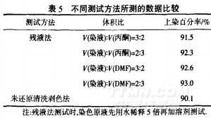 由表5可知,采用残液法所测的数据很接近,与未经还原清洗的剥色法所测数据也比较接近.