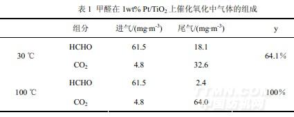 由以上实验结果,可以看出本实验所制备的催化剂1wt%Pt/TiO2在温和条件下对甲醛催化氧化反应具有良好的催化效果。