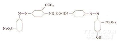 这些燃料的分子内具有二芳基脲()的结构,同时具有偶氮基。耐光性能相当优良,一般均有较好的日晒牢度,所以应用比较普通。其色泽以黄、橙、红、蓝等色为主,也有一些棕色等色泽的燃料。例如: