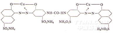 这些染料分子中由于含有铜络结构,其日晒牢度可高达7级,能与还原染料相媲美,但色泽较暗,在沸浴中易于引起水解。
