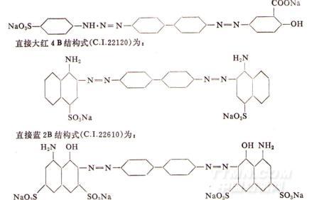 )或羧酸基等水溶性基团,对纤维素纤维具有较大亲和力,在中性介质中能直接染色,也能染丝、毛、维纶纤维等,染法简便的直接染料。但牢度较差,部分染料在染色后,如经固色处理,可提高湿处理牢度。这类染料结构以双偶氮及多偶氮染料为主,并以联苯胺及其衍生物占多数。