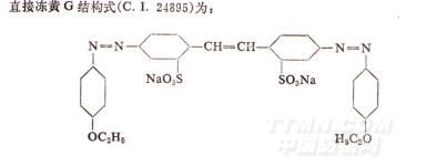 ),同时又偶氮基。这些燃料以黄。橙色为主。如常用的直接冻黄G,是以上述基团为主,并将燃料中的羟基用氯乙烷酯化后所得。直接冻黄G有良好的染色性能,惟湿处理牢度稍差。