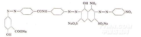 例如,直接墨绿NB由4,4’二氮基苯酰替苯胺,一边偶合成黄色,另一边偶合成蓝色通过酰胺基联结而成。