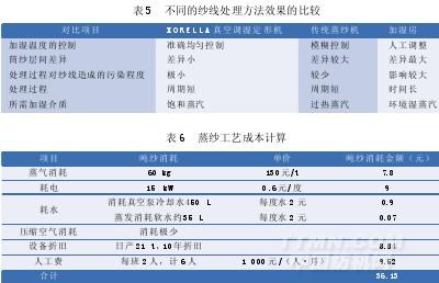 采用XORELLA真空调湿定形机与传统蒸纱机、加湿房处理纱线的差异如表5所示。