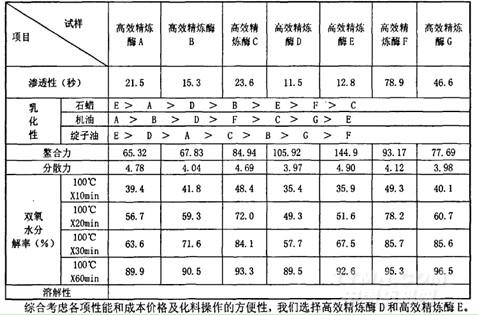 1.2乳化性:乳化性的高低直接影响织物毛效的高低和布面的均匀染性,分别评估对石蜡、锭子油、机油的乳化力;