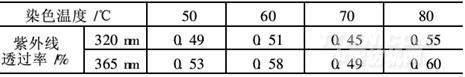 由表3知,染色温度不同,织物的紫外线透过率有所不同,但变化很小,说明染色温度变化对织物的防紫外线效果影响不大。
