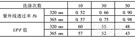 从表5可知,洗涤30次后,织物的UPF值在50以上,防紫外线效果优异;洗涤50次后,织物的UPF值仍在40以上,防紫外效果优良。