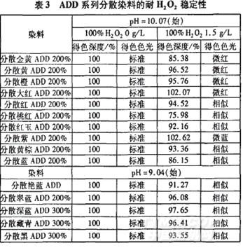 ADD系列耐碱分散染料的耐H202稳定性见表3。