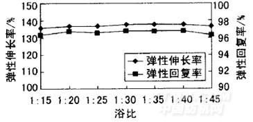 图8浴比对织物弹性性能的影响
