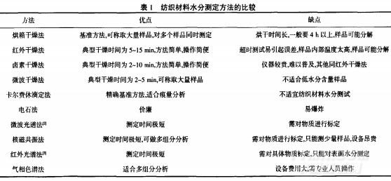 纺织材料水分测定方法可归纳为10种,结果见表1.