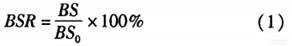 参照GB/T3923.1—1997《纺织品织物拉伸性能第1部分:断裂强力和断裂伸长率的测定条样法》,在YG026D型电子织物强力机测定。断裂强力保留率(BSR)按式(1)计算: