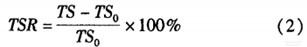 参照GB/T3917.2_2oo9《纺织品织物撕破性能第2部分:裤形试样(单缝)撕破强力的测定》,在YGO26D型电子织物强力机上测定。撕破强力提升率(TSR)按式(2)计算: