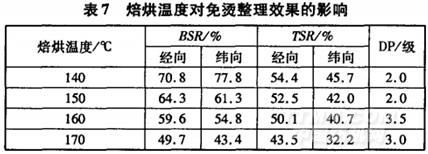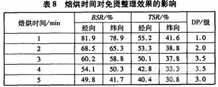 2.7焙烘条件对免烫整理效果的影响