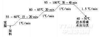 但是,这些适合中性浴染色的活性染料由于上染速率较快,存在着匀染问题。采取低温起染,缓慢升温,分段保温,适当加快车速,适当延长高温保温时间,以及加入适量匀染剂等匀染措施,可以实现匀染透染的染色效果。通过反复摸索,得出以下可行的染色工艺: