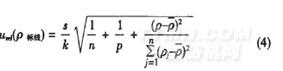 式(4)中,s为残差标准差;k为曲线斜率;n为标准溶液测试次数;p为样品测试次数;p为样品通过曲线求得的质量浓度,ug/mL;p为标准溶液质量浓度平均值,ug/mL;p为标准溶液第J次测试结果,ug/mL,将相应数值代入式(4)后,得: