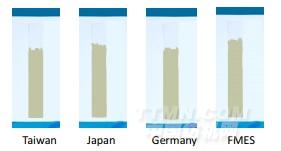 规定时间内测量毛效爬升高度,毛效越高,表明潤濕性越好。