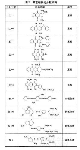 染化料 商品分散染料(部分结构见表1和表2),碳酸钠、醋酸、醋酸钠、保险粉和N,N.二甲基甲酰胺(DMF,均为分析纯试剂),硼氢化钠、亚硫酸氢钠(均为工业品),分散匀染剂Dispertex RP-131(台湾聚益化学工业股份有限公司)