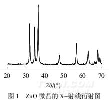 X-射线衍射:在X射线多晶衍射仪上对试样粉末进行分析,Cu靶,电压为40 kV,电流为40 mA,样品的扫描范围为20°~70°.粒径:用激光粒度仪测试ZnO溶胶的粒径和分布情况.扫描电镜:采用扫描电子显微镜观察ZnO粉体和整理前后真丝织物的表观形貌.抗静电效果:利用织物静电测试仪,按GB/T 12703.1-2008《纺织品静电性能的评定第一部分:静电压和半衰期》进行测试,测试条件为20℃,相对湿度35%.耐洗牢度:参照GB/T 3921.3-1997方法测试,洗涤条件为标准皂片5 g/L,(40±2)℃,10 min,浴比1∶50.断裂强力:按照GB/T 3923.1-1997《纺织品织物拉伸性能第1部分:断裂强力和断裂伸长率的测定条样法》测定,计算断裂强力保留率.白度:在全自动白度仪上测试.