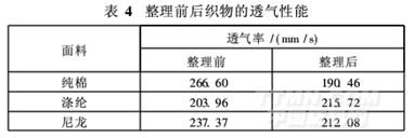 EzGard EG-8610整理前后,织物透气性能的变如表4所示。