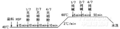 将5g的染色纯棉针织布样及漂白布样(沾色样)置于同一皂洗浴中进行皂洗。以白布为标准,利用电脑测色配色仪测定沾色样并评级。级别越高,说明该皂洗粉(剂)的防沾色能力越强;反之则越差。