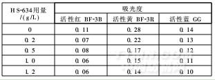 表1 皂洗剂HS-634用量对水煮残液吸光度的影响
