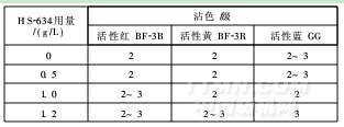 2.2 皂洗剂HS-634用量对防沾色能力的影响