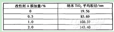 表1不同改性剂添加量分散制备的纳米"rio平均晶粒尺寸