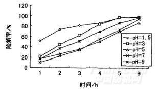 图5改性纳米TiO2在不同初始pH值下的光催化活性表面的吸附以及光生电子和空穴催化剂表面的迁移,进而对光催化反应产生影响[10]。