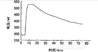 采用实验室自制的多功能环境模拟测试舱在线检测系统,测得电压与时间的关系,如图6所示;将其转化为降解率与时间的关系,如图7所示。