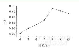 图6 反应时间对ΔA的影响