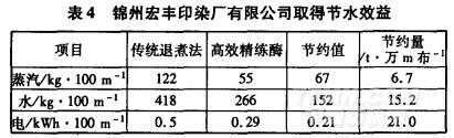 锦州宏丰印染厂有限公司采用该工艺后节水效果明显(见表4)。