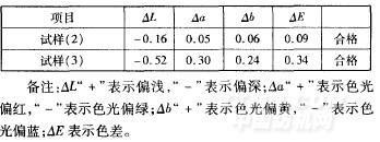 缸内精练布和冷轧堆前处理织物按照1.2.2节中的工艺流程和工艺处方进行处理,以染色后的试样(1)为标样,用Datacolor电脑测配色仪分别读取试样(2)和试样(3)的读数,结果见表2。