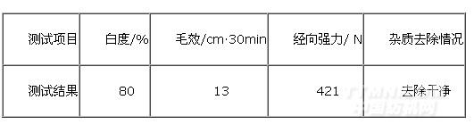 前处理工程酶在毛巾上的用量基本在3~5 g/L,一般可根据实际情况:原毛巾坯布上含有浆料的量多少以及棉籽壳、杂质等来确定是否增加用量。在本实验中的毛巾含浆量较高,棉籽壳也较多,我们可从表格中看出A4的用量在4g/L可以达到半制品的工艺要求。
