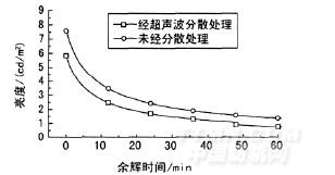 注:夜光涂层浆超声波振荡条件:温度25℃,超声波每次处理时间2s,间隔5s,全程时间30min。