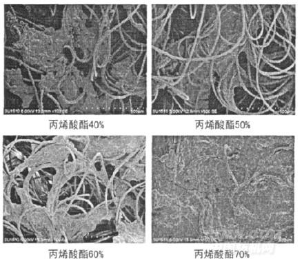 图4不同丙烯酸酯质量分数的发光材料电镜照片