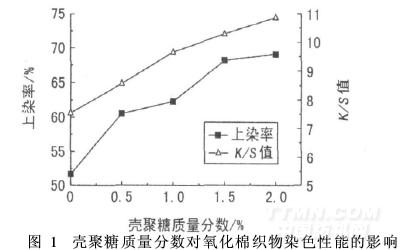2. 1. 2 壳聚糖质量分数对氧化棉染色性能的影响